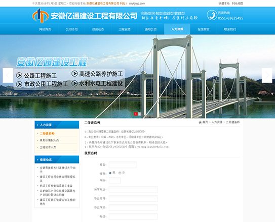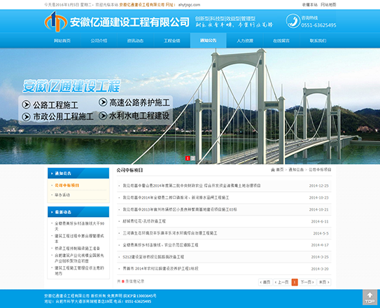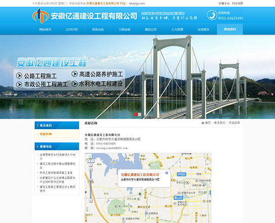 安徽億通建設工程有限公司成立于2007年9月,公司為獨立法人,注冊資本3000萬(wàn)元。經(jīng)過(guò)公司領(lǐng)導的不懈努力與員工敬業(yè)的工作,發(fā)展為一個(gè)多資質(zhì),施工能力強的施工企業(yè)。我公司是集公路工程施工、高速公路養護施工,市政公用工程施工,水利水電工程建設。