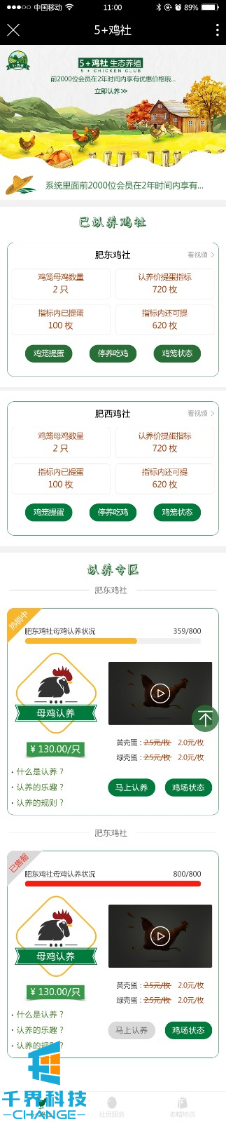 該項目是一個(gè)在線(xiàn)認養雞的一個(gè)平臺。里面包含在線(xiàn)認養,定期返現,商品配送,在線(xiàn)商城,視頻監控,在線(xiàn)商城,優(yōu)惠券系統,會(huì )員系統等功能。項目?jì)仍黾佑螒蚧?dòng)環(huán)節,類(lèi)似qq農場(chǎng)形式。