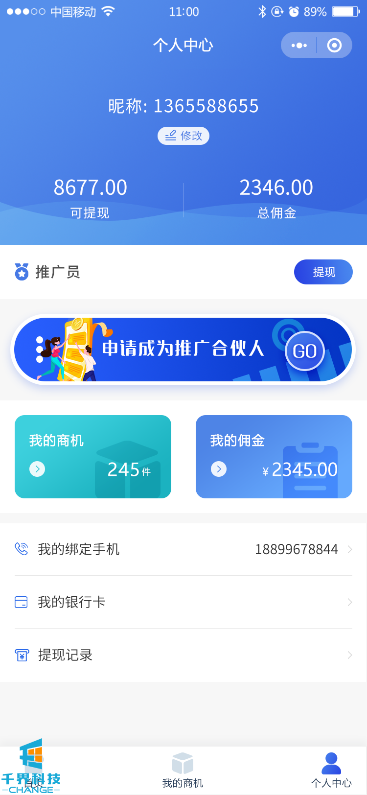 該項目為申請成為推薦人可以向平臺推薦意向商機,由后臺人工審核是否有效,對接ERP系統獲取訂單,將訂單與商機進(jìn)行人工匹配,實(shí)現發(fā)放獎勵。平臺有分銷(xiāo)模式,后臺有多角色靈活權限管理等功能