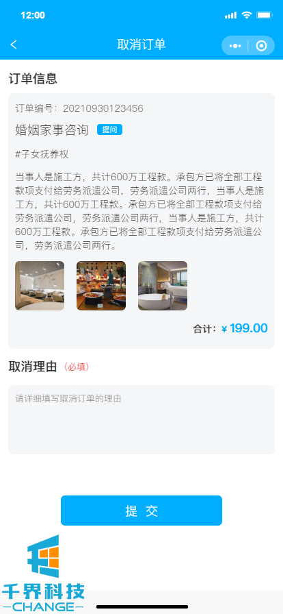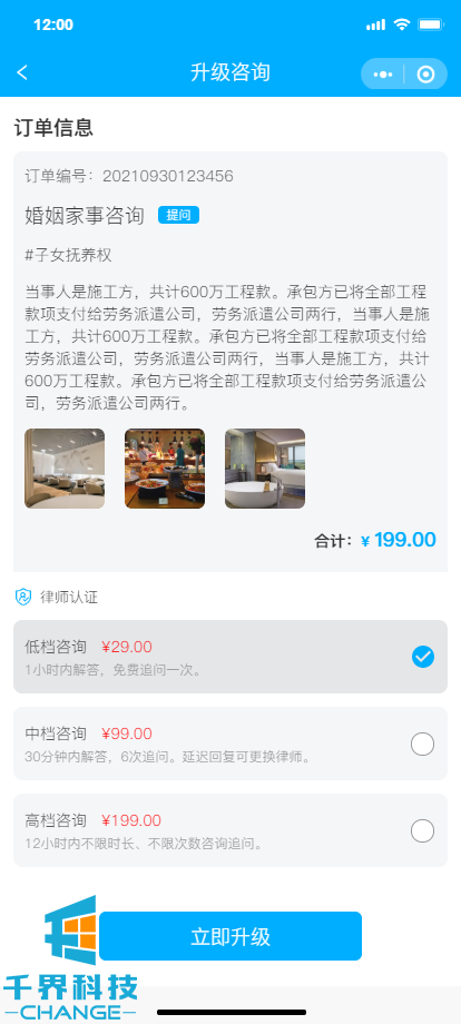 項目名稱(chēng):法律付費咨詢(xún)小程序 項目類(lèi)型:小程序