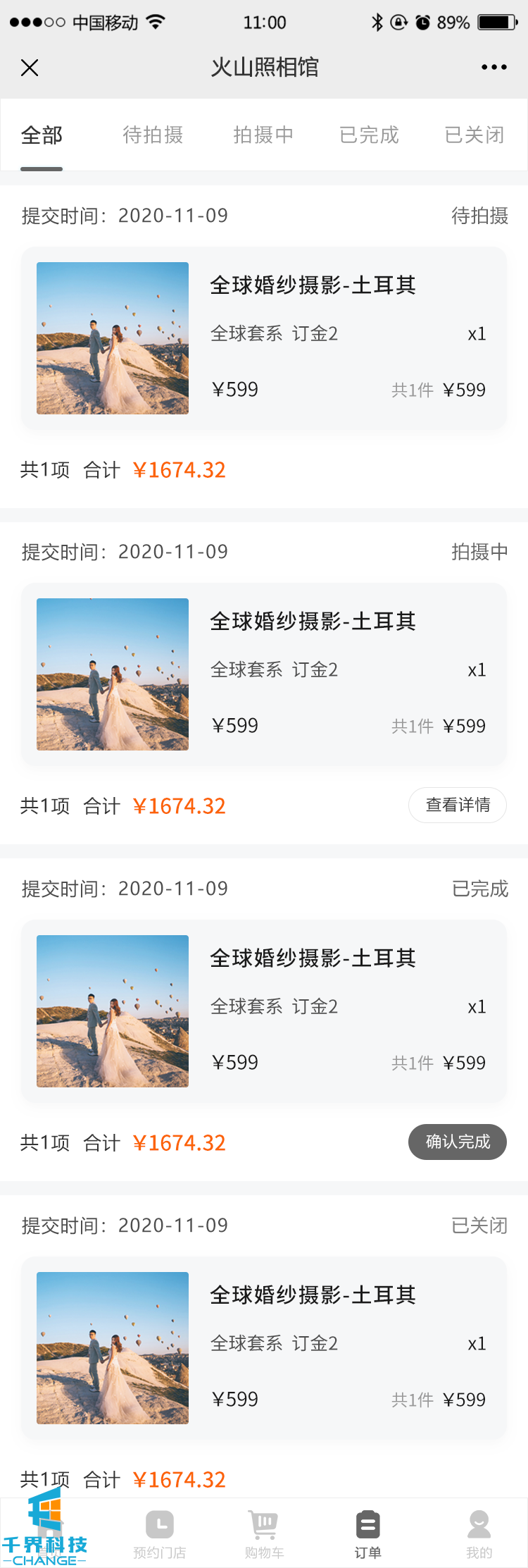 該項目是一個(gè)單門(mén)店的攝影預約公眾號,主要功能有用戶(hù)可以在公眾號預約攝影套餐,后臺接單安排線(xiàn)下預約攝影。后臺有預約排期管理等功能。