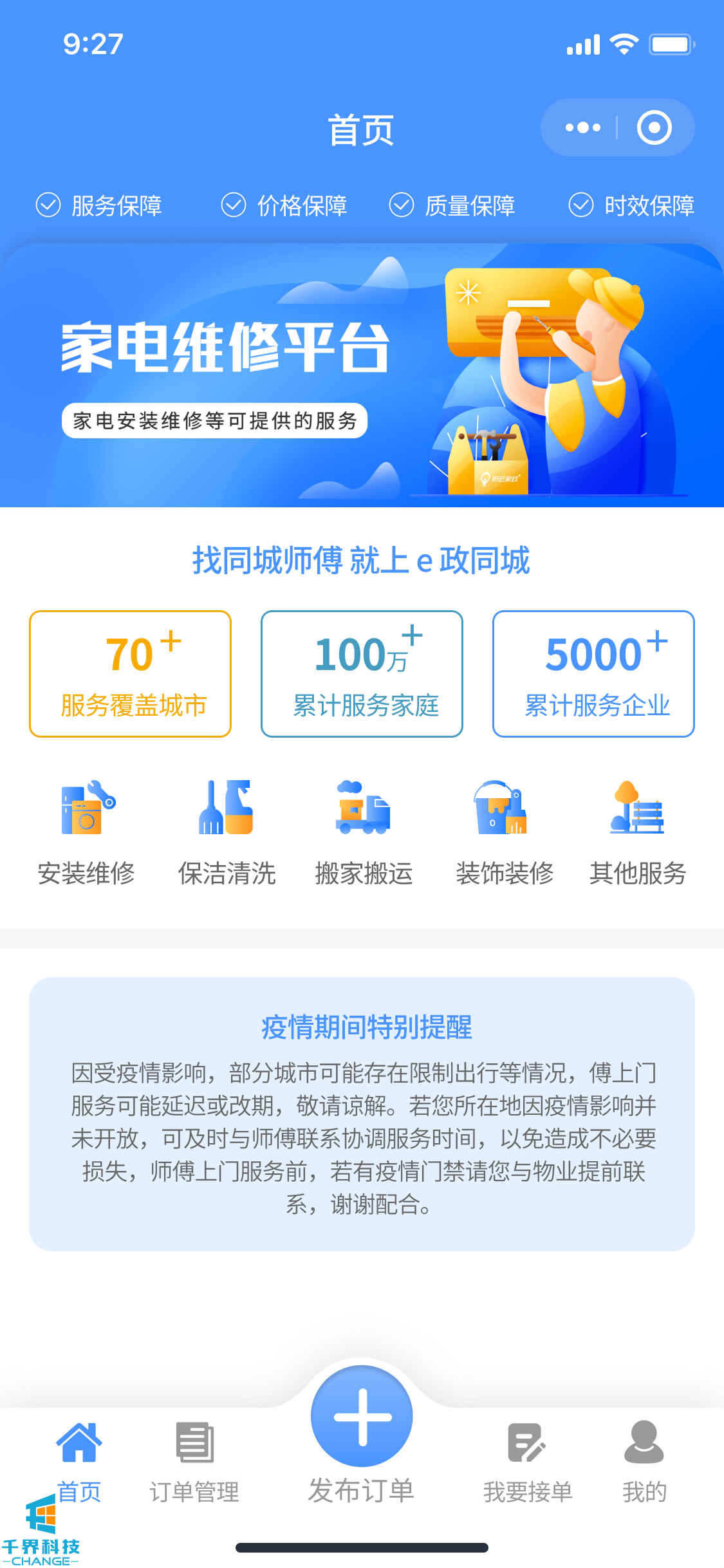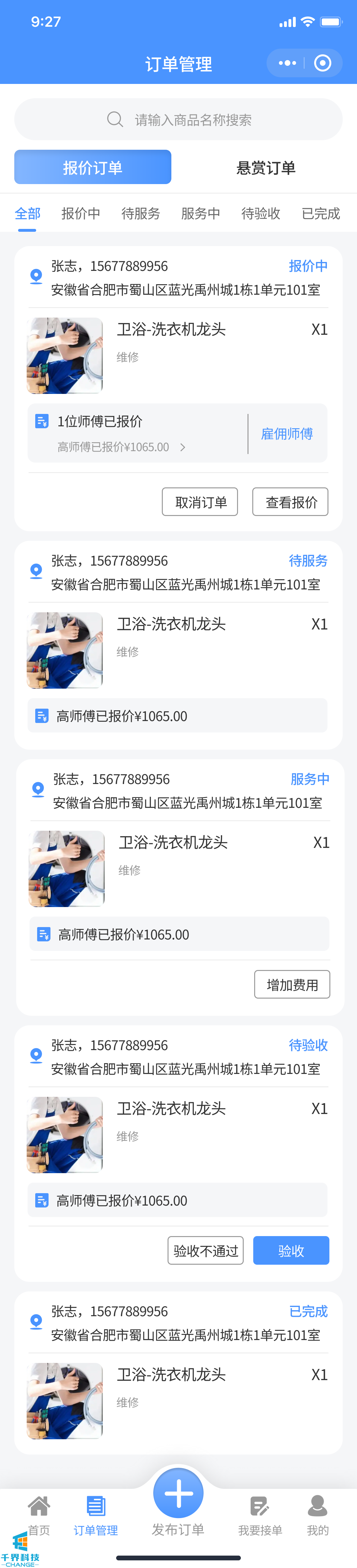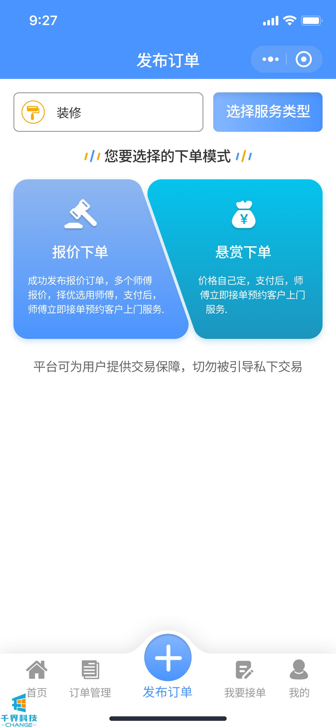 該項目是一個(gè)多城市地區的服務(wù)眾包平臺,用戶(hù)可以通過(guò)該小程序發(fā)布一些家政、維修等相關(guān)任務(wù),任務(wù)發(fā)布有兩種形式一種是讓師傅報價(jià)一種是自己報價(jià)讓師傅接單。師傅端可以通過(guò)小程序進(jìn)行接單或報價(jià)。其中帶有對應的分銷(xiāo)邏輯。